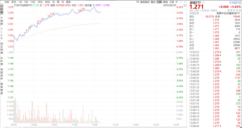 游戏股今日表现强势,多只个股涨幅巨大,相关行业ETF--游戏ETF(516010)大涨超6%,领涨市场。从消息面来看,多重利好叠加,游戏板块有望进入黄金发展期。